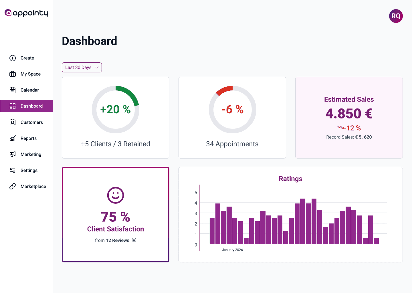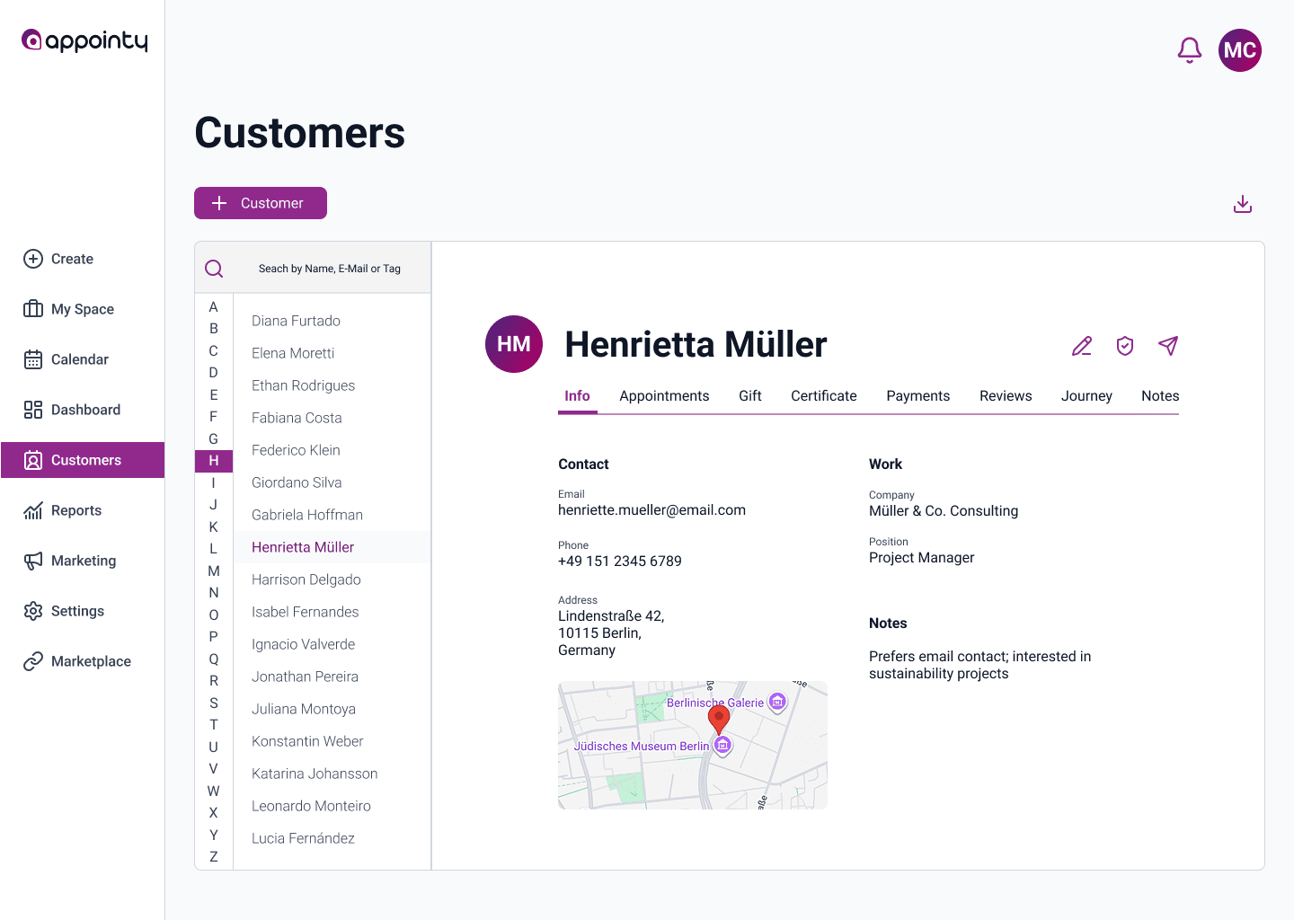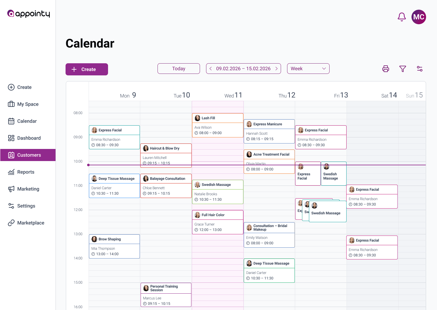 Note: Independent UI exploration based on Appointy’s publicly available desktop interface. Not affiliated with the company.